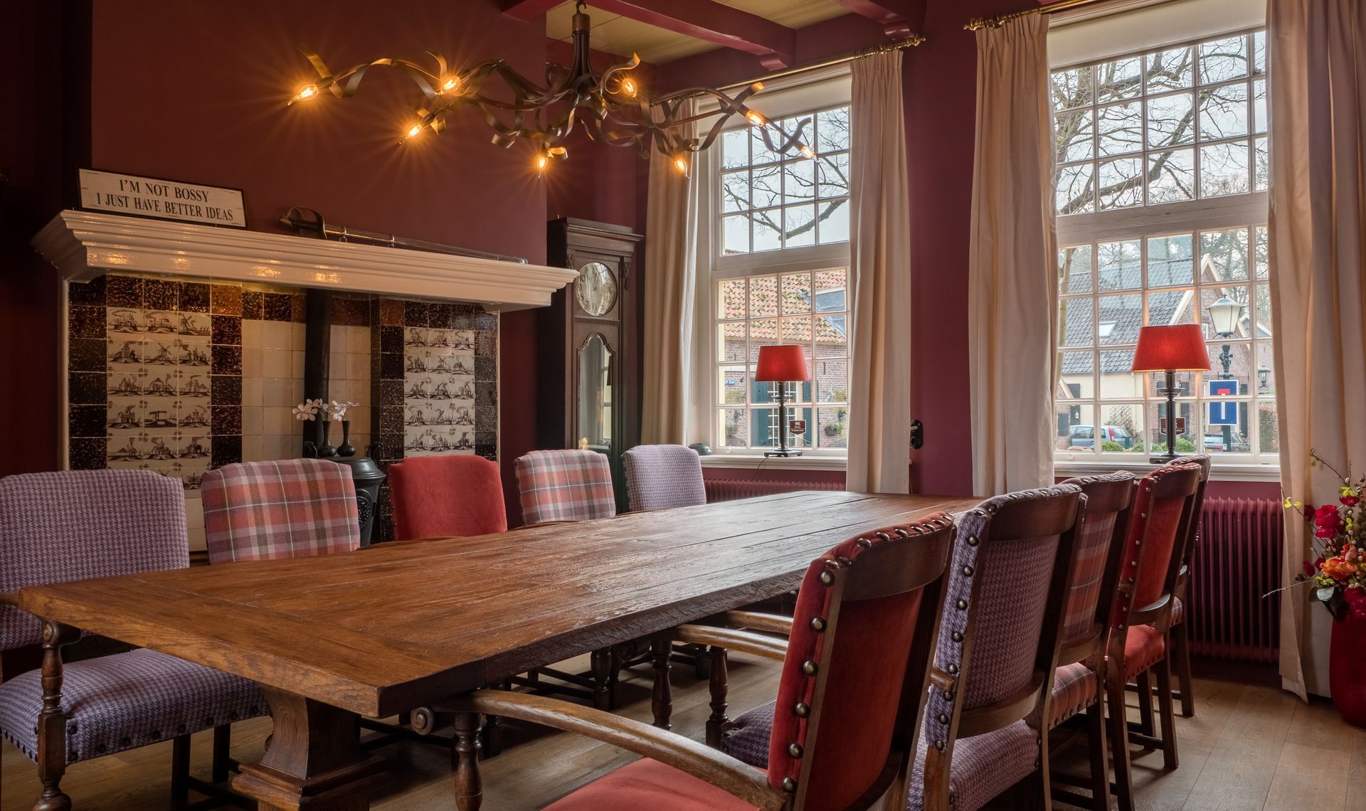 Het oudste gedeelte van Herberg de Gouden Leeuw is de burgemeesterswoning uit 1575. Tegenwoordig is de opkamer van de burgemeesterswoning in gebruik als ‘Heerenkamer’. Er pronkt, net als in de Gelagkamer, een open haard met een authentiek en origineel 18e-eeuws tegeltableau. Hiermee is de ‘Heerenkamer’ een mooie sfeervolle ruimte voor gezelschappen die in de beslotenheid van de groep à la carte willen dineren. Maar ook voor vergaderingen (tot ca. 12 personen) of kleine conferenties, is dit mooie vertrek zeer geschikt.